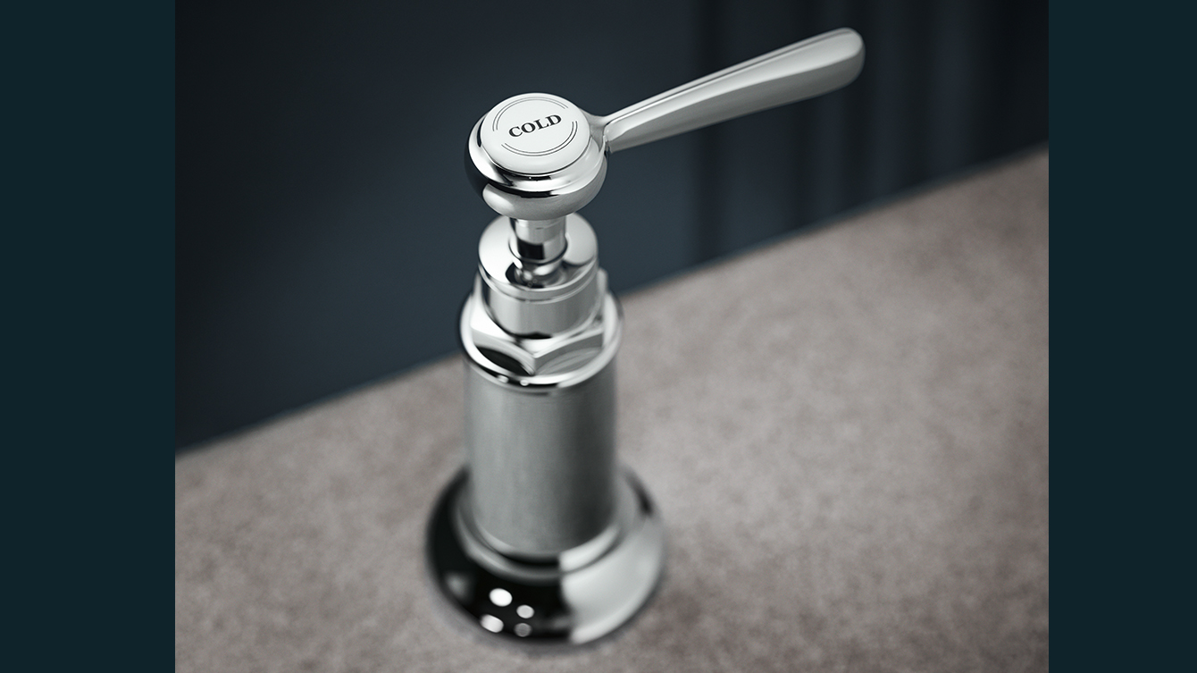 ברזים, מקלחות ואביזרים מעוצבים על פי עקרונות העיצוב של המהפכה התעשייתית הראשונה.