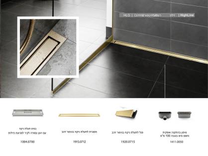 מערכת ניקוז 70 ס"מ מדגם HighLine נירוסטה בגימור PVD פליז ( מוזהב) |