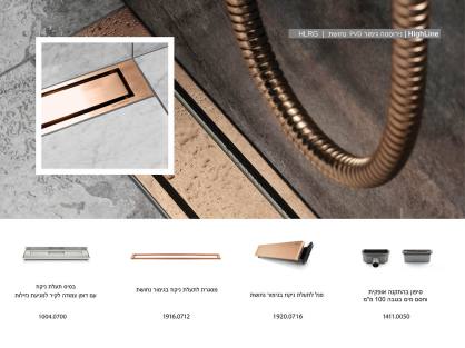 מערכת ניקוז 90 ס"מ מדגם HighLine נירוסטה גימור PVD נחושת |