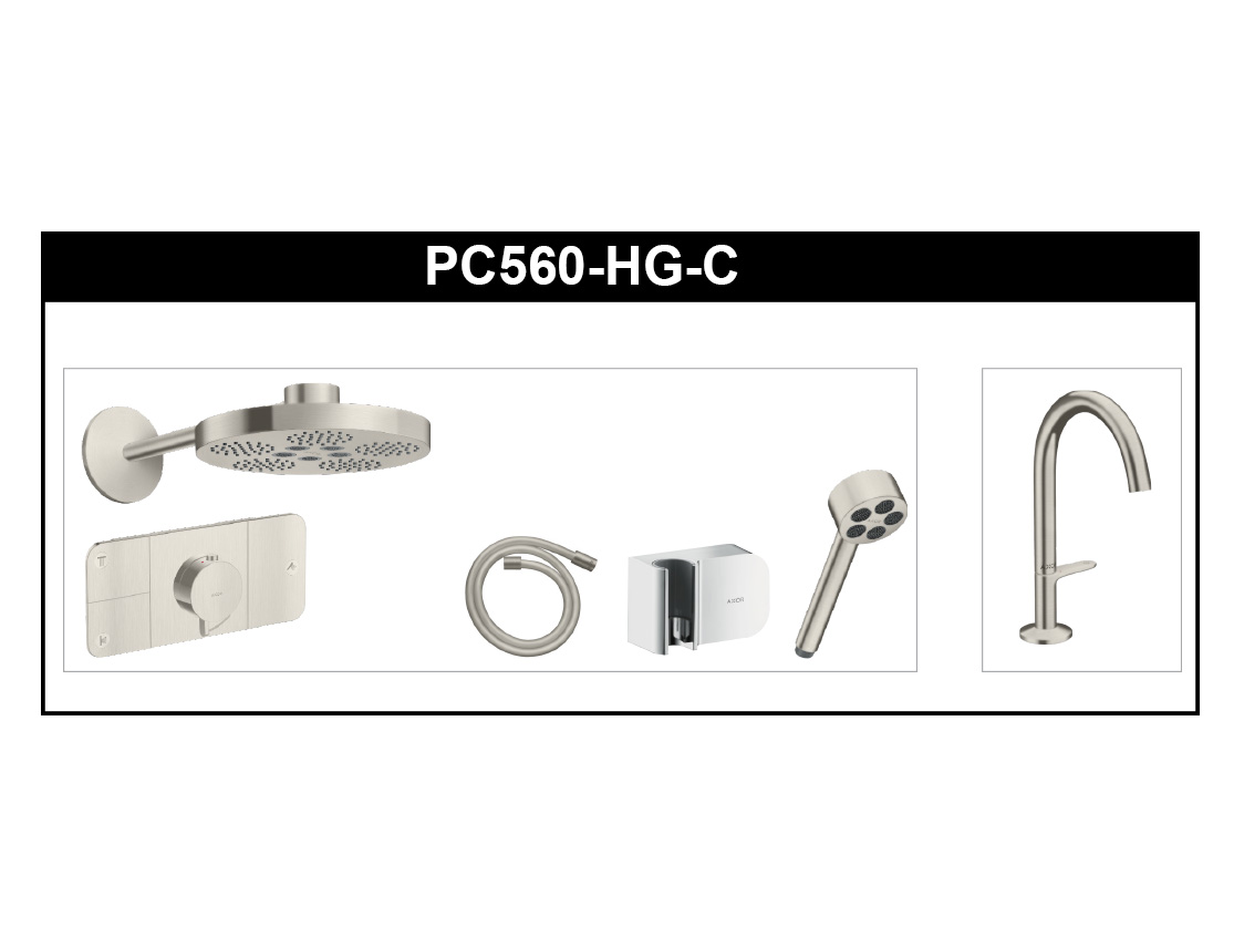 חבילת AXOR ONE תרמוסטטי 5 דרך בגימור נירוסטה מוברש |