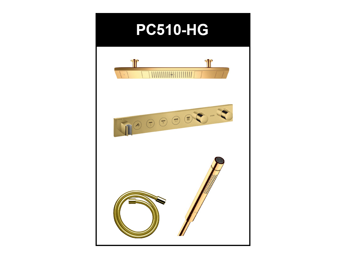 חבילת SHOWER HEAVEN + AXOR UNO תרמוסטטי 7 דרך בגימור זהב מבריק |
