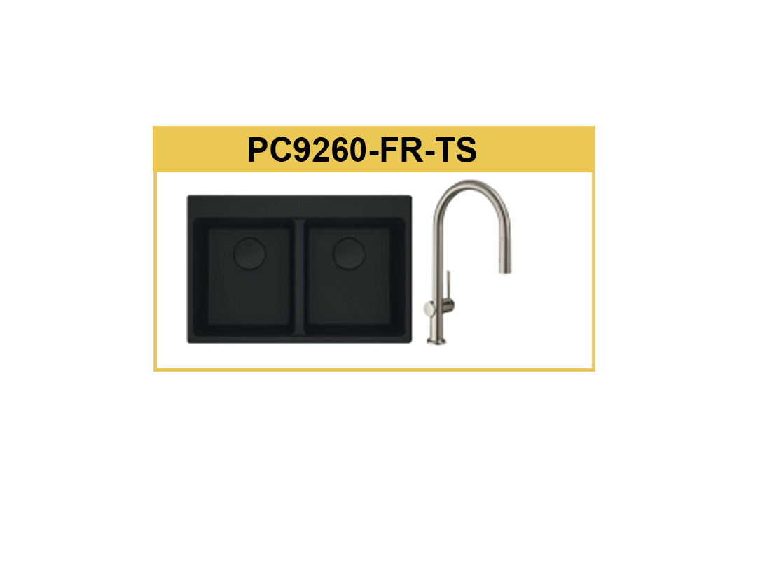חבילת כיור גרניט MARIS MRG 210-62 שחור מט כולל ברז מטבח נשלף 72823800 |