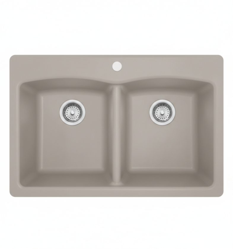 כיור גרניט כפול הש אליפסה ELLIPSE פלטינוםELG 220-37 כולל אביק לכיור