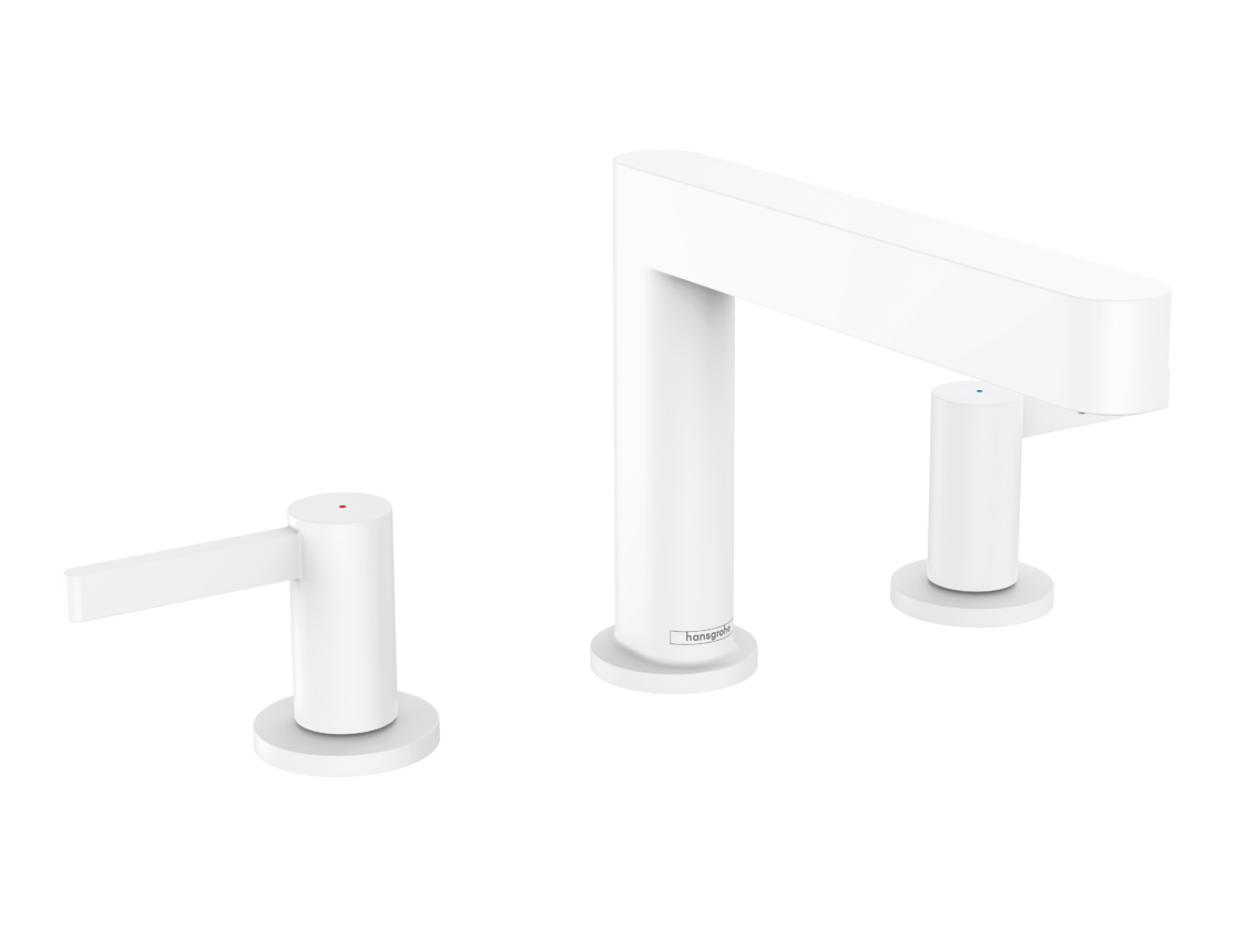 5. סוללת 3 חורים מהמשטח 110 + ונטיל פתיחה בלחיצה מסדרת פינוריס בגימור לבן מט