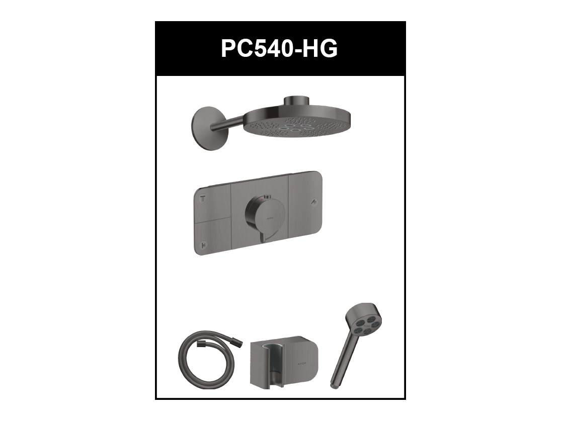 חבילת RAIN SELECT + AXOR CITTERIO תרמוסטטי 6 דרך בגימור שחור מוברש |